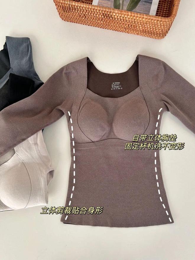其三合一设计更是别出心裁,是内衣、是保暖打底、是外穿T恤~轻松应对室内外温差变化。内嵌胸垫设计,既避免了层层叠穿的臃肿,又确保了穿着的舒适与体面,无论是日常通勤还是休闲聚会,都能让你保持得体而从容。