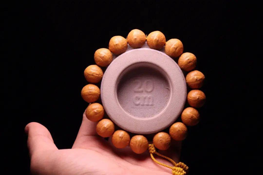 第三方面就是挑选凤眼菩提的形状,现在市场我们能看到最多的是圆珠的,和藏式的为主,之前还有切片的,就是把两头都给切掉直留中间眼睛的部分,还有扇面的,就是把每颗籽切成一个倒三角的形状,然后拼成一个单圈的手串,但是现在随着凤眼菩提价格的回落,后两种费工又费时又不讨好,市场又不认可,这种形状现在已经很少见了,倒是有几家工作室现在不在形状上动心思,在凤眼菩提的眼睛上动心思,比如在眼睛上镶宝石或者镶黄金,市价自然是不菲的,就这种对产品开发的工匠精神,和对文玩行业的执着就该给他们点一个赞,所以在挑选凤眼菩提形状的时候首选圆珠。